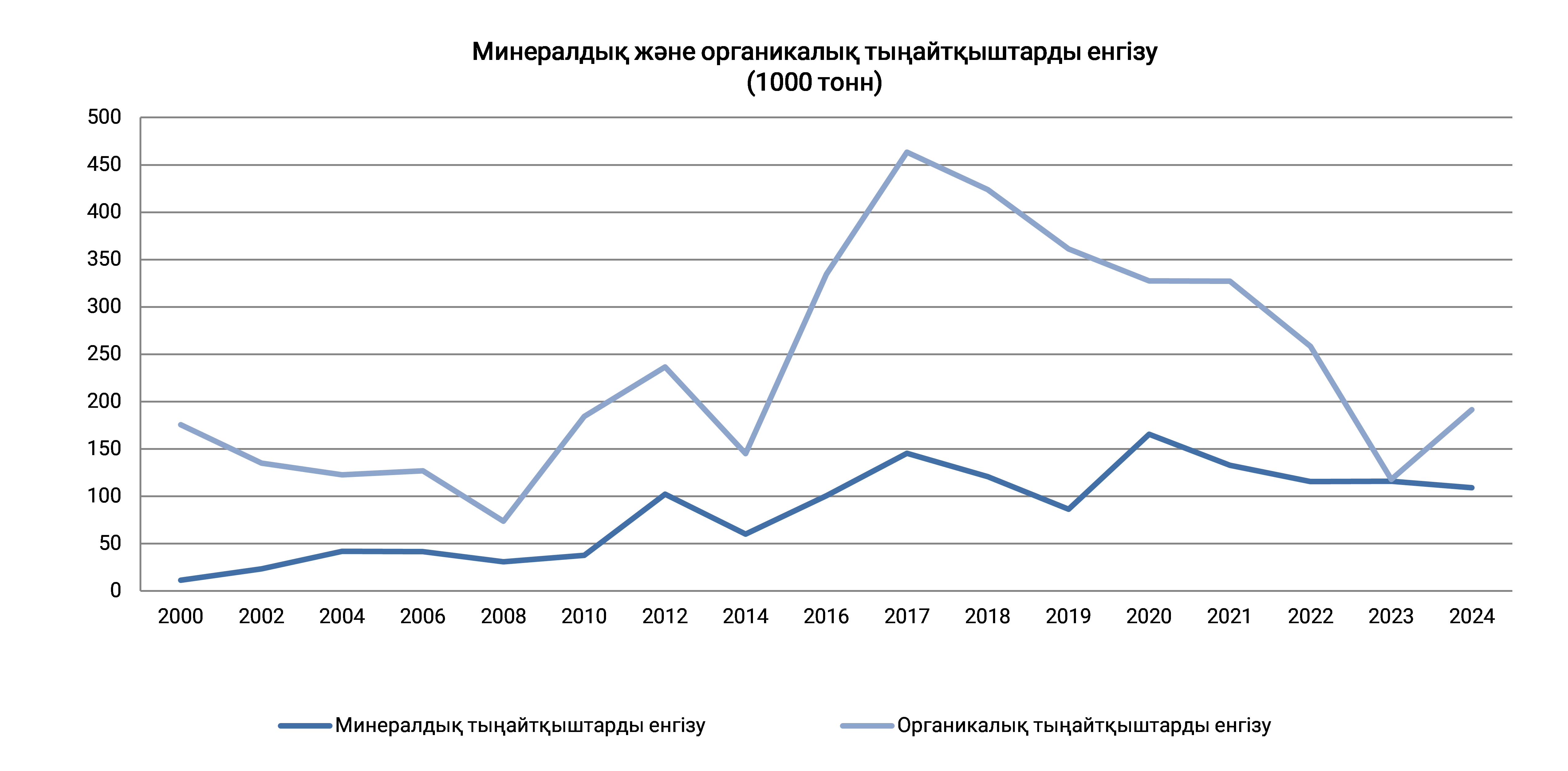 Ақпарат ашық және жабық жердегі ауылшаруашылық дақылдары егісіне, сондай-ақ көпжылдық екпе ағаштарға (бақ, жидектік, жүзімдік, тұт ағаштары), табиғи шабындықтарға ағымдағы жылдың түсіміне енгізілген минералдық және органикалық тыңайтқыштар бойынша көрсетілген.