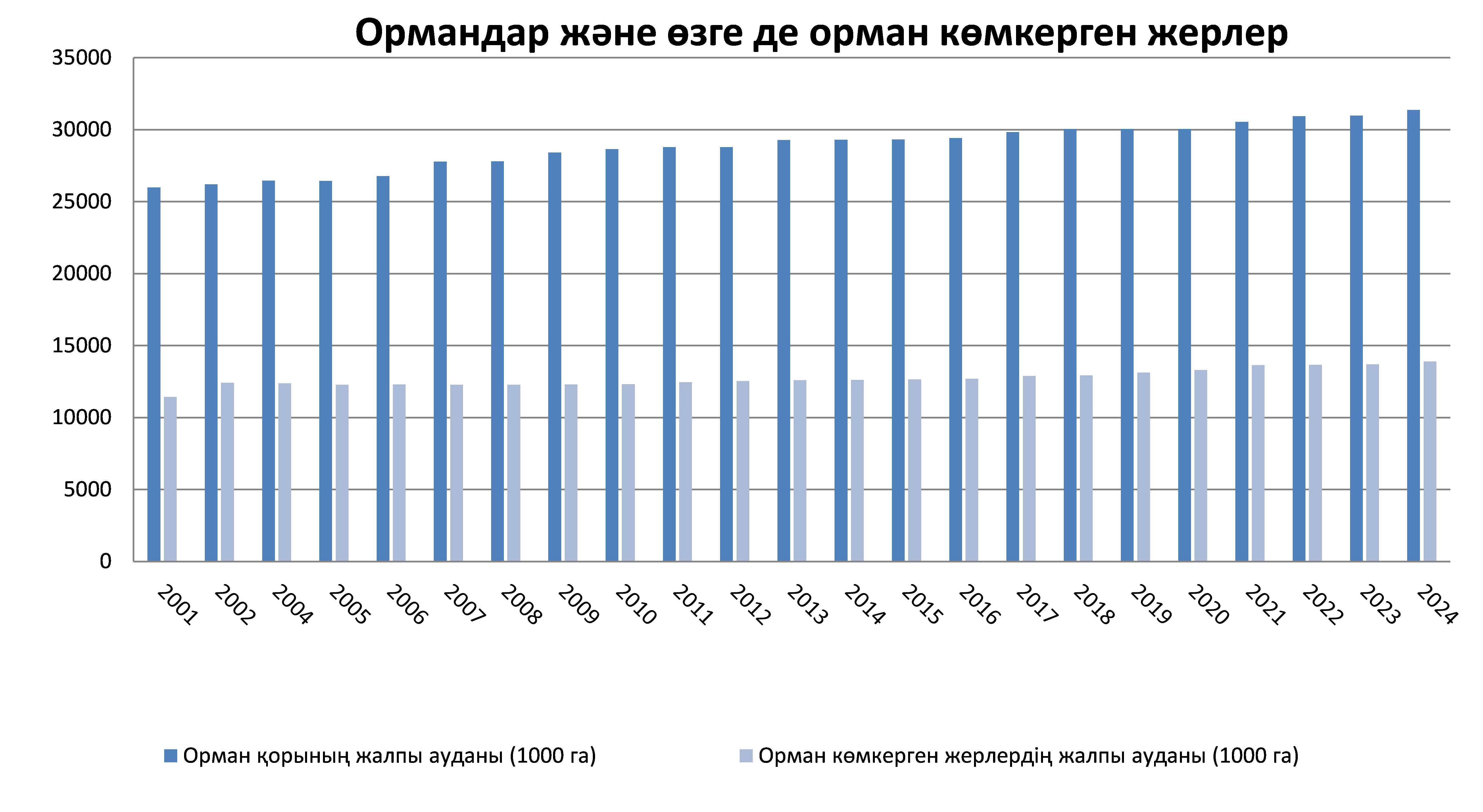 Көрсеткіш ормандардың және өзге де орман көмкерген жерлердің ауданын, оның ел ауданына қатынасын және табиғи ормандары, ағаш отырғызулары, өнім алу үшін, сондай-ақ топырақ және су ресурстарын, Экожүйелік қызметтер мен Биоәртүрлілікті қорғау үшін ормандар мен өзге де орман көмкерген жерлердің үлесін сипаттайды. Қазақстан Республикасының аумағындағы барлық ормандар, сондай-ақ орман өсімдіктерімен қамтылмаған, бірақ орман шаруашылығының мұқтажына арналған орман қорының жерлері Қазақстан Республикасының орман қорын құрайды.Орман қорына орман көмкерген, орман көмкермеген (ағашы кесілген жерлер, алаңқай жерлер және т. б.), арнайы мақсаттағы плантациялар, орман питомниктері, жинақталмаған орман дақылдары, ормансыз жерлер және т. б. жатады. Орман көмкерген жерлер деп -табиғи және қолдан өсірілген орман екпелері (орман дақылдары), сондай-ақ бұталар алып жатқан жерлерді айтады. Алқаағаштар мен бұталардың орман көмкерген жерлерге тиесілігінің негізгі белгісі толымдылығы (ағаштардың сүрекдіңдерге орналасу тығыздығының дәрежесі, олардың алып жатқан кеңістікті пайдалану үлесін сипаттайды) 0.4 және одан жоғары, ал одан жоғары жастағы екпелерде 0.3 және одан жоғары болуы тиіс. Орман өнімі-бірінші кезекте сүрек, талшық, биоэнергия және ормансыз орман өнімдерін өндіруге арналған орман ресурстары болыптабылады.