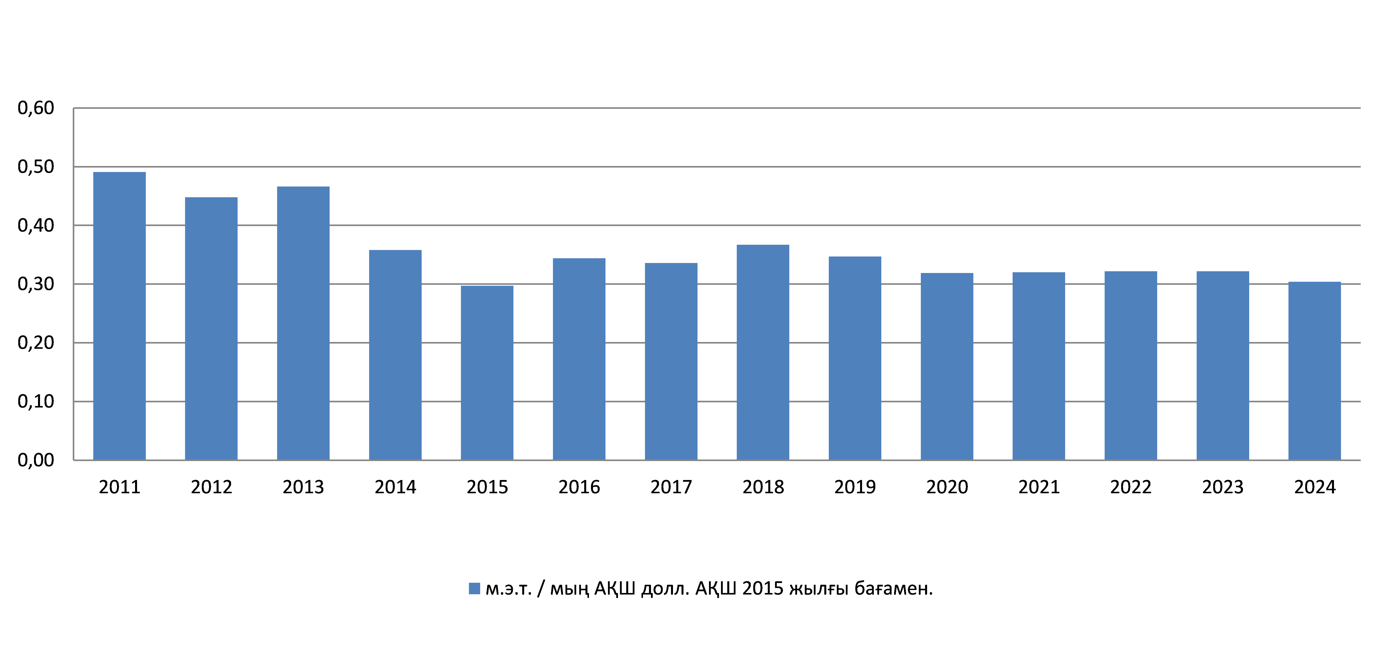 Бұл көрсеткіш елдегі энергия тұтыну тиімділігінің деңгейін сипаттайды. Көрсеткіш соңғы энергия тұтыну (және/немесе жеткізілетін бастапқы энергияның жалпы саны) мен күнтізбелік жыл үшін сатып алу қабілетінің тепе-теңдігі бойынша тұрақты бағамен есептелген жалпы ішкі өнім (ЖІӨ) арасындағы қатынасты білдіреді.