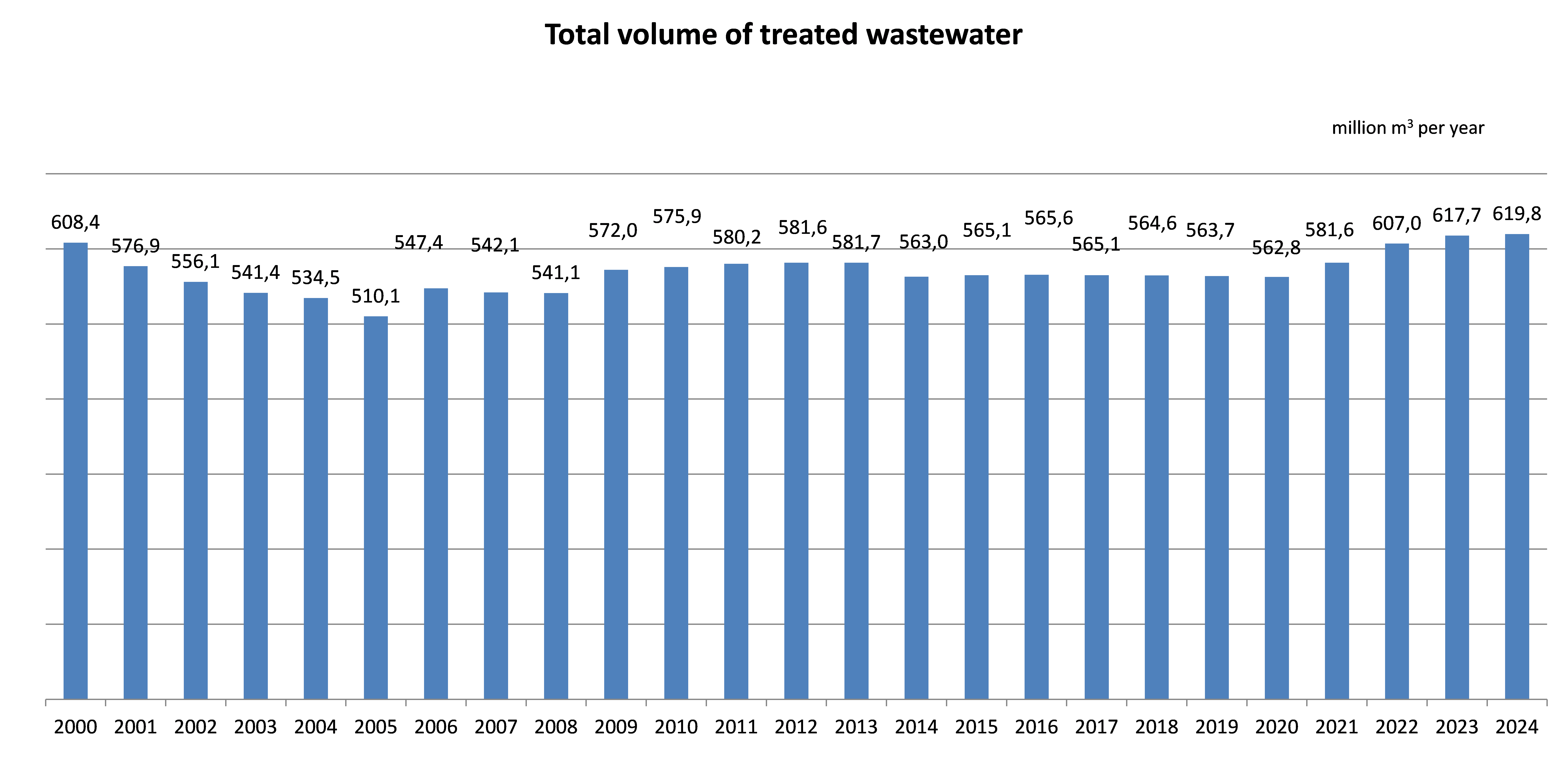 This indicator shows the volume of wastewater treated at urban wastewater treatment plants, Autonomous wastewater treatment plants, and other treatment facilities. There are different treatment plants with mechanical/primary, biological/secondary and advanced/tertiary treatment with an indication of the design (nominal) capacity and actual capacities for the biochemical oxygen demand.
