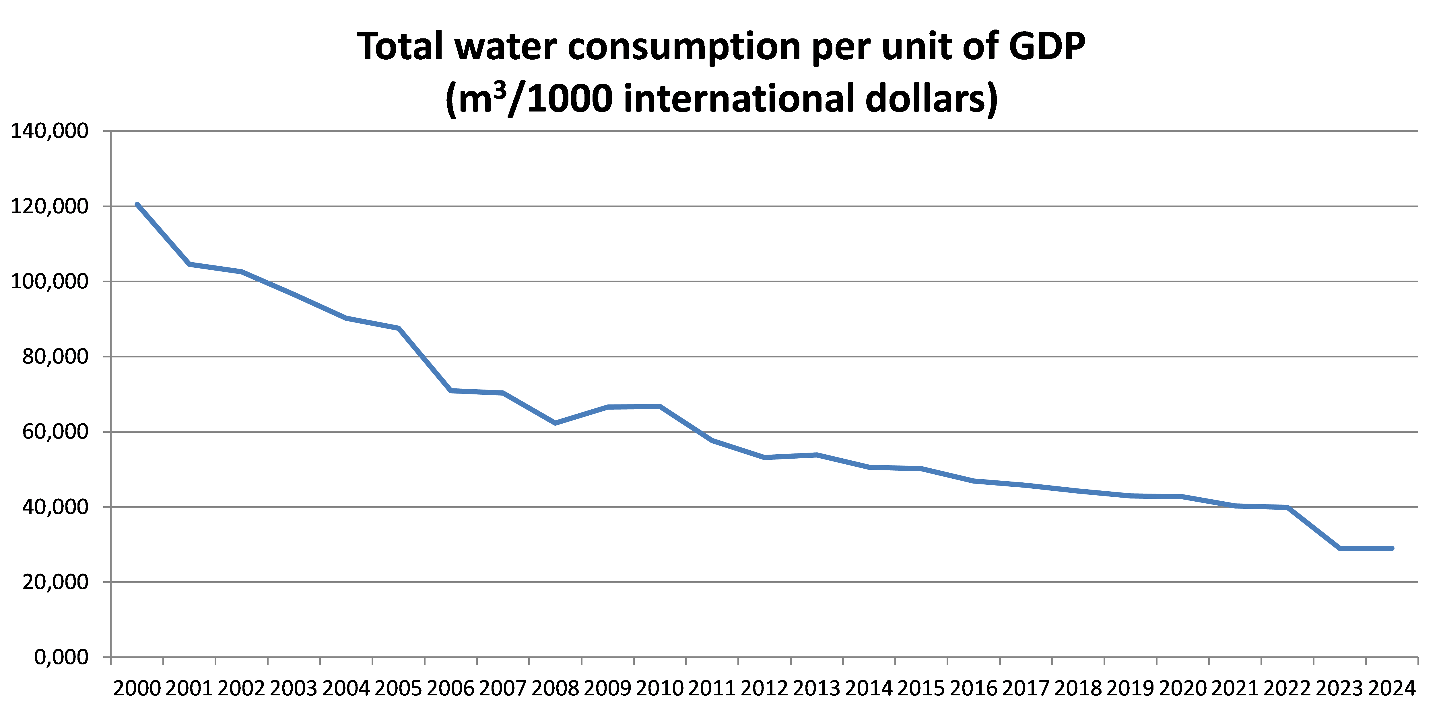 The total volume of water use and the volume by economic activity are measured in million cubic metres per year; total water use per unit of GDP is expressed as cubic meters per in international dollars (constant prices, purchasing power parity in 2017).