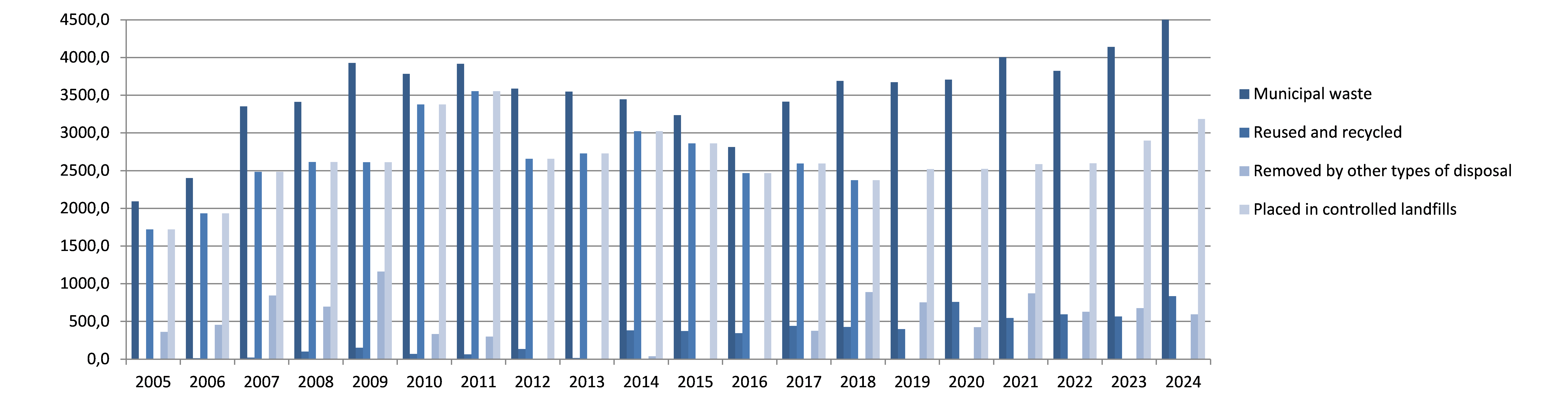 The responsible state body for generating data on municipal waste is the Bureau of National Statistics of the Agency for Strategic Planning and Reforms of the Republic of Kazakhstan based on annual statistical observations 1-waste «Report on the collection and export of municipal waste» and 2-waste «Report on the processing (sorting), utilization and disposal (depositing) of waste».