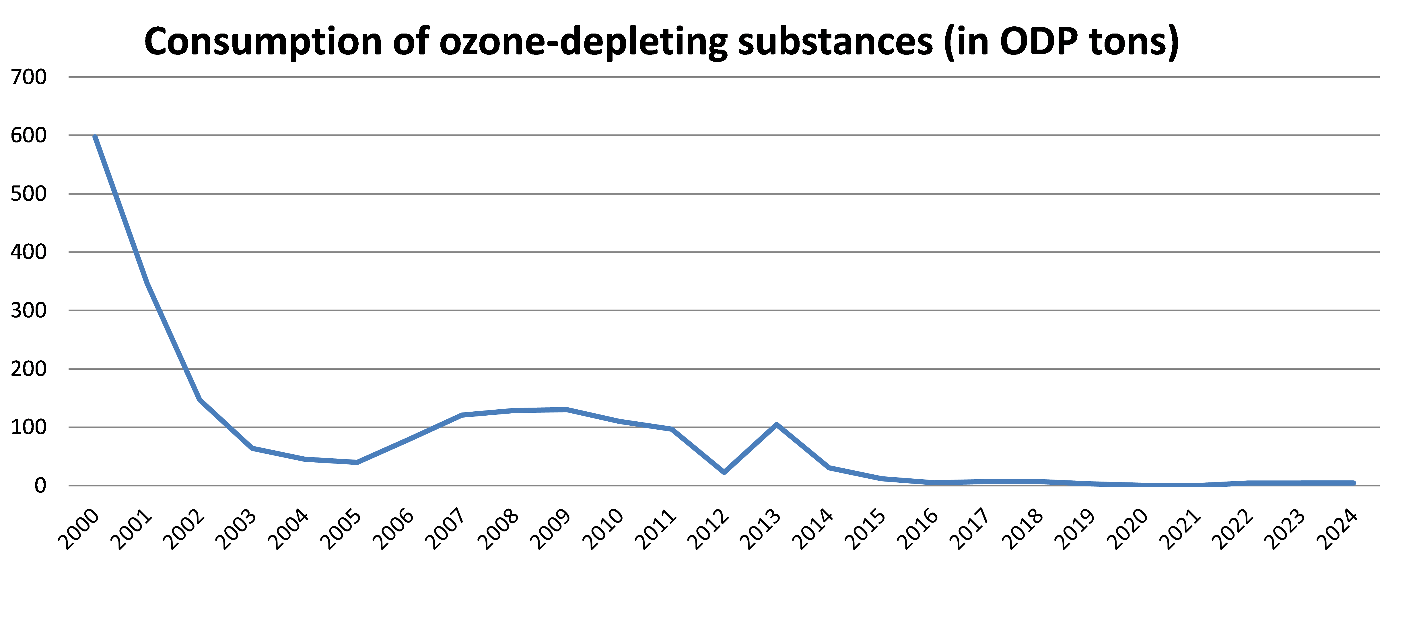 The indicator determines the amount of ozone-depleting substances (ODS), and indicates aggregated ozone-depleting capacities