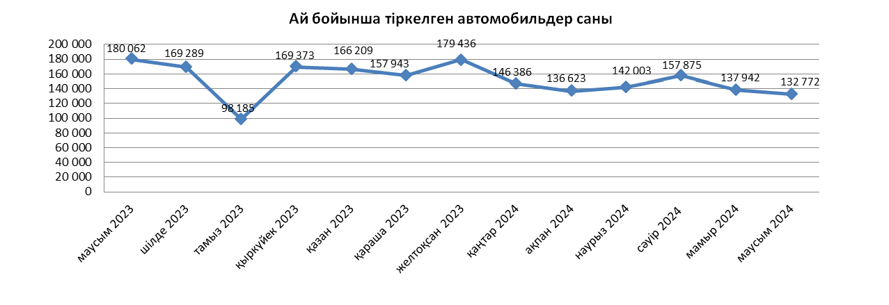 2024 жылғы маусымда 132,8 мың бірлік автокөлік есепке қойылды, бұл көрсеткіш өткен жылдың сәйкес кезеңімен салыстырғанда 26,3% кеміді.