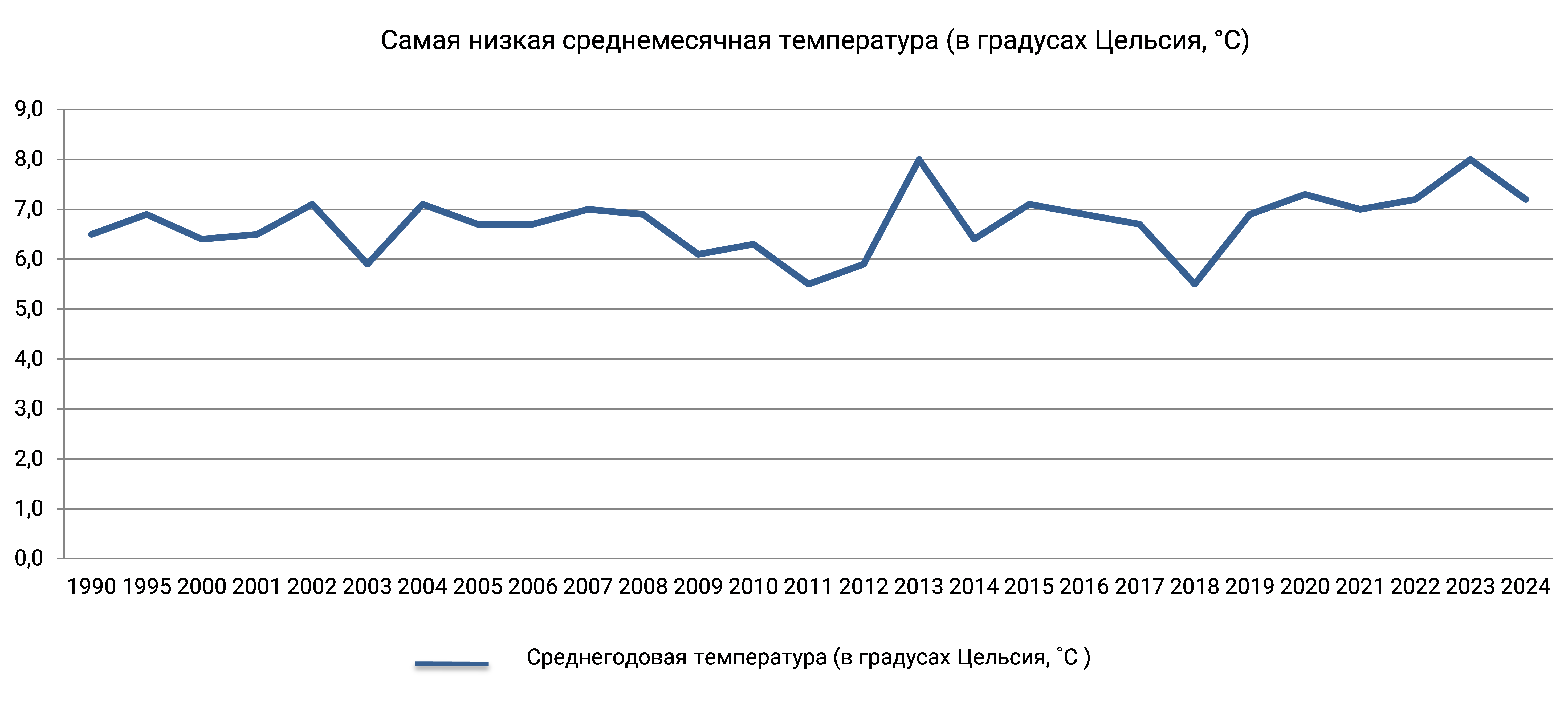Температура воздуха непосредственно связана с состоянием климатической системы Земли. Показатель характеризует тенденции колебания среднегодовой температуры и позволяет определить степень изменений, связанных как с цикличностью естественных климатических изменений, так и с антропогенным воздействием на глобальное изменение климата.