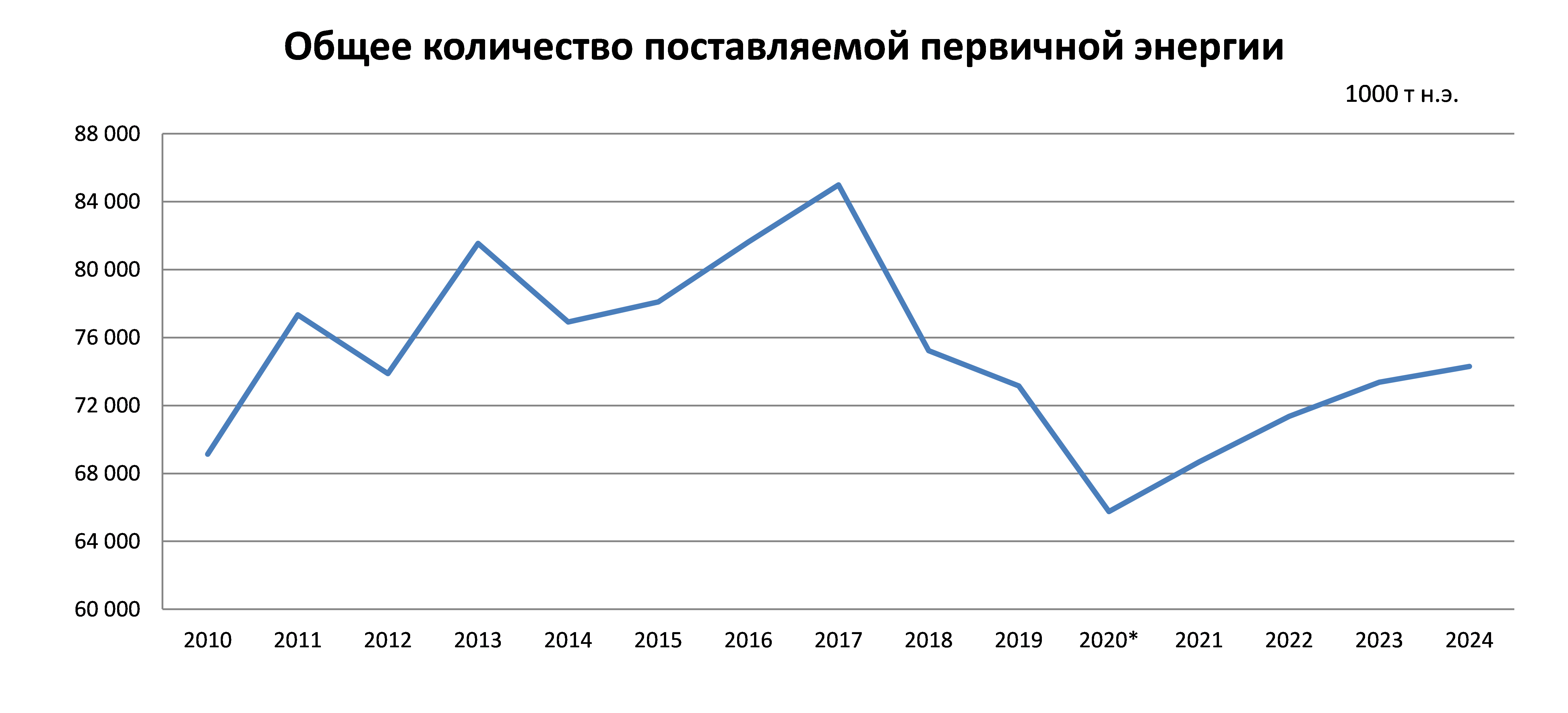 Показатель отражает количество энергетических ресурсов, ежегодно поставляемых в стране в целом и в разбивке по видам топлива и энергии (угля, нефти, нефтепродуктов, природного газа, атомной энергии, гидроэнергии, геотермальной и солнечной энергии, биотоплива и отходов, электроэнергии и тепла). Производство первичной энергии учитывает количество энергии, полученное или произведенное из природных источников Республики Казахстан после удаления из топлива инертных веществ, включая энергию, потребленную производителем в процессе производства (добычи) указанных ресурсов (расход на собственные нужды). Используются сводные данные государственной статистики о добыче (производстве) топливно-энергетических ресурсов.